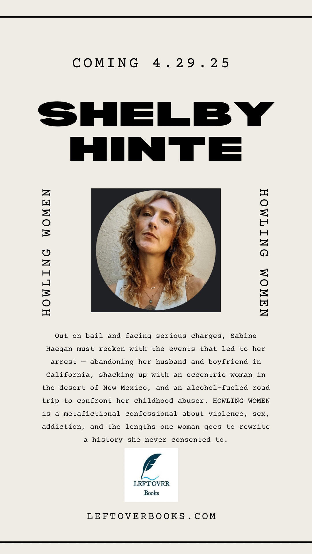 “In Howling Women, the past doesn't die on its own, it has to be hunted down. A confessional written in an exacting, explosive, and at times darkly funny voice vibrating with rage and redemption. Hinte has concocted a fearless, cunning, and honest to the core novel that will sit on my shelf next to Animal by Lisa Taddeo and Cruddy by Lynda Barry. A remarkable, voicey, and unforgettable debut. A knockout.”— Chelsea Bieker, author of Godshot & Madwoman“Shelby Hinte channels the otherworldly landscape of New Mexico in this heartbreaking tale of magnetism, identity, and new beginnings. In prose as fiery and evocative as the stories of Lucia Berlin or the skulls of Georgia O’Keeffe, Hinte writes of broken people starting over in an inhospitable world. Howling Women is a haunted confession that asks us what it means to be understood, to be human, and ultimately to be saved.”— Kevin Maloney, author of The Red-Headed Pilgrim“Feverish and full of grace, Shelby Hinte's Howling Women is a wrenching must-read for anyone on the verge, the lamb, the hunt for self-knowledge and self-salvation.”— Allie Rowbottom, author of Aesthetica & Jell-O Girls“Howling Women is a daring and gripping story of desire, rage, and the things we keep invisible—this book is a vortex.”— Chelsea Hodson, author of Tonight I'm Someone Else“Shelby Hinte leans into chaos with the best of them. She's at the bar, tapping beer cans with Dostoevsky to her left, Jim Thompson to her right. Howling Women is a lightning bolt of a debut.”— Bud Smith, author of Teenager“Shelby Hinte's Howling Woman is a haunting descent into the darkness of self-loathing and destruction.”— Jenny Don't of Jenny Don't & The Spurs